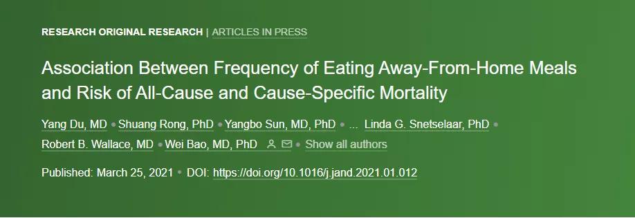 近日一項發表在Journal of the Academy of Nutrition and Dietetics的研究顯示,外出就餐與死亡風險之間存在關聯。