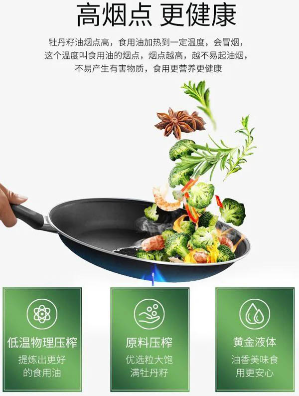 特別是喜歡制作煎炒烹炸的中式美食的家人們,別忘了使用煙點高且營養全面的牡丹籽油哦!