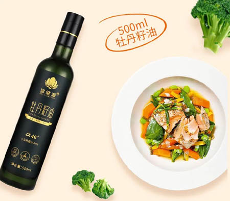 牡丹籽油是由油用牡丹籽提取的一種新型木本油脂,集經濟價值、生態價值于一體。2011年3月,原衛生部批準牡丹籽油為新資源食品,牡丹籽油正式被列為食用植物油。牡丹籽油不僅營養豐富,富含人體必需的脂肪酸成分α-亞麻酸,具有增強免疫力、調節血壓、降低膽固醇等作用,而且還富含多種藥理活性物質,具有藥用價值。