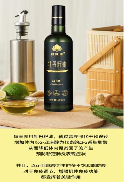 智健源牡丹籽油富含42% Ω-3(α-亞麻酸),助力全民免“疫”!