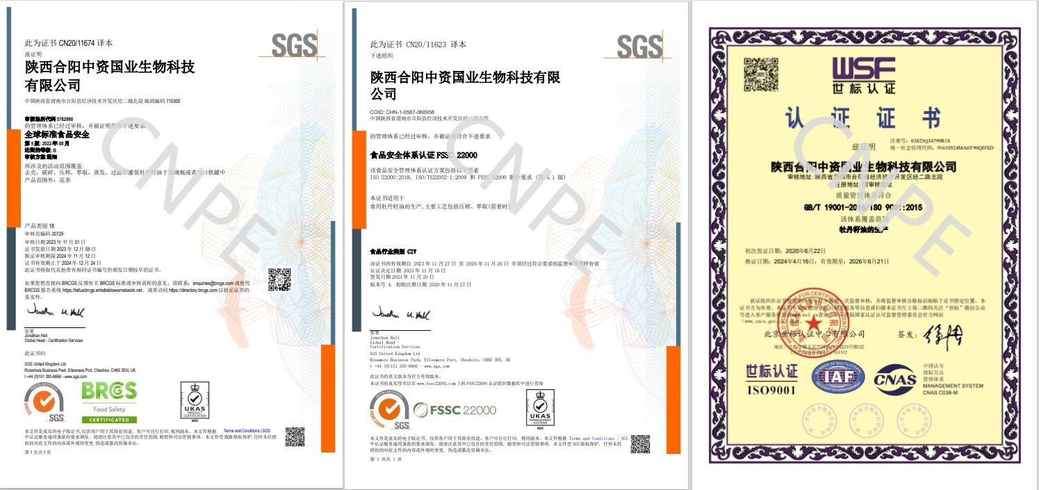 通過自己的研發中心,中資國業還提取了牡丹花瓣凍干粉、牡丹純露、牡丹籽油、牡丹根提取物、牡丹籽油微囊粉等多種牡丹精粹,有食品級原料,化妝品級原料還可提供完整版安評檢測報告,打造營養新高度。